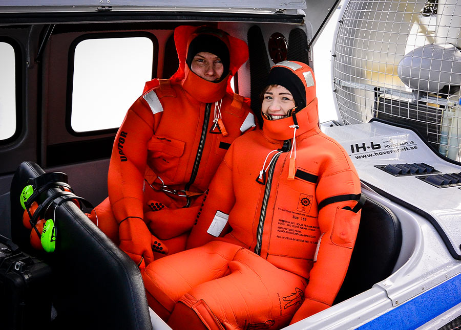 On the Hovercraft safari we drive over the ice while learning everything you want to know about the ice behaviour, wildlife and the archipelago. From and with the locals living in the archipelago.